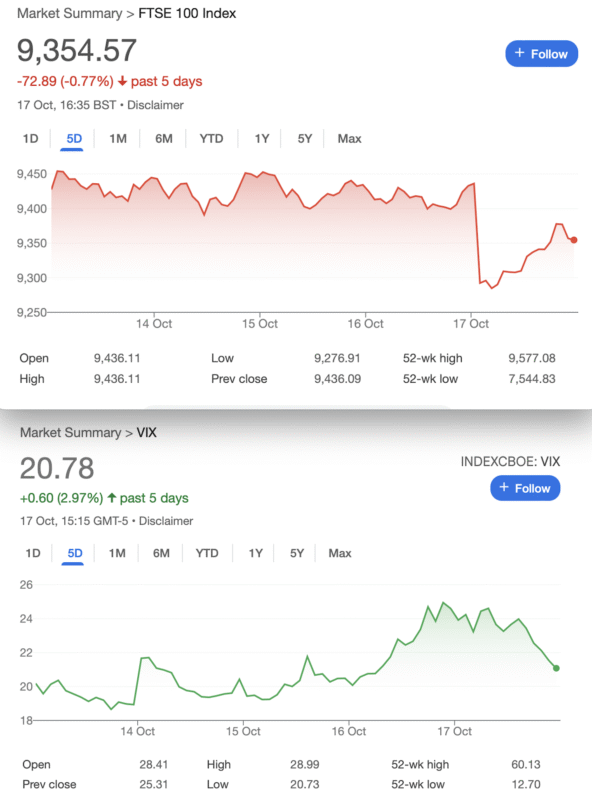 So here’s the problem: The market tanked at the end of the day and looks like carrying on next week. It’s a jumble sale and Friday’s closing prices may not mean too much.